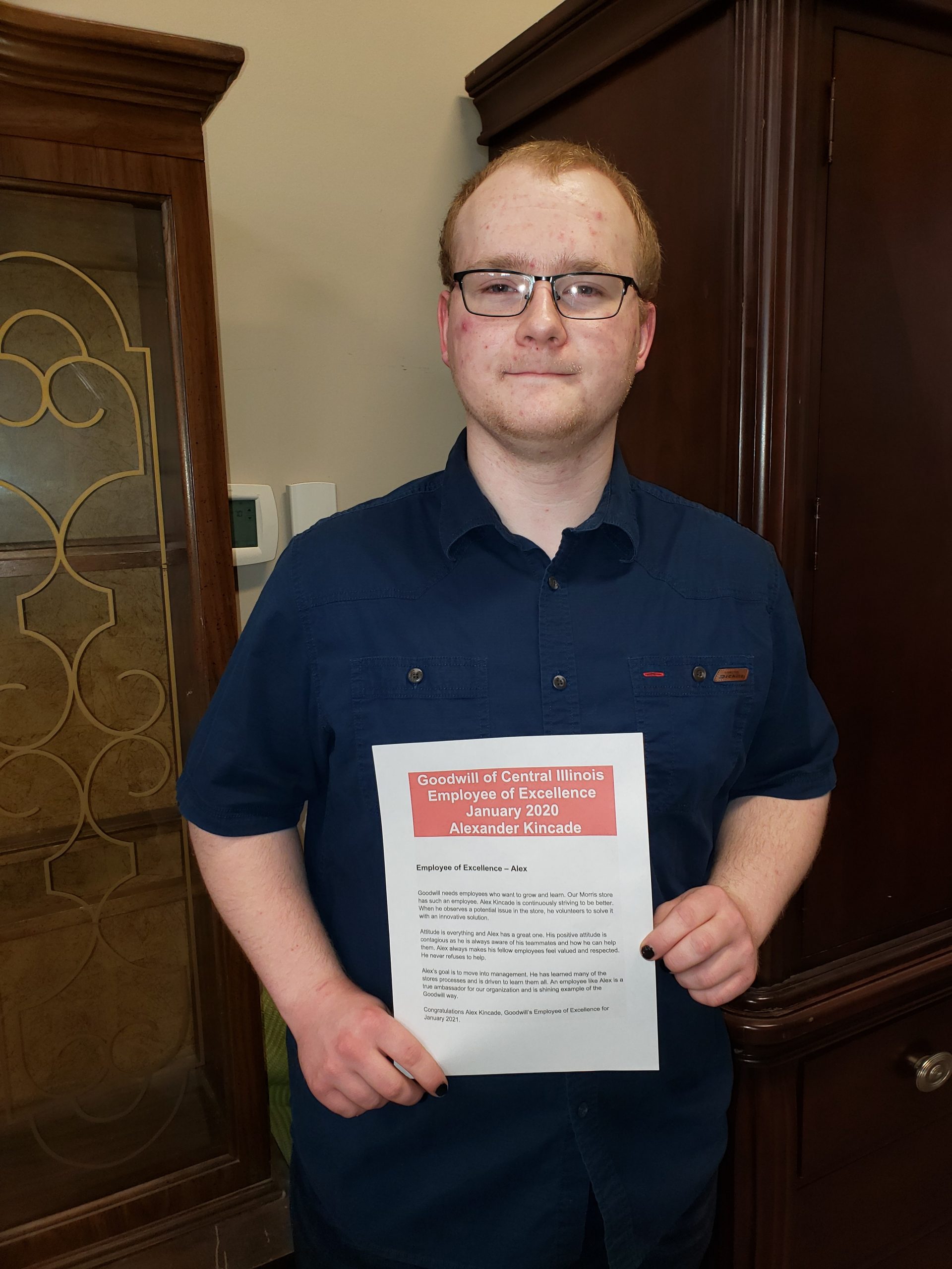 Congratulations Alex Kincade, Goodwill’s Employee of Excellence for January 2021.